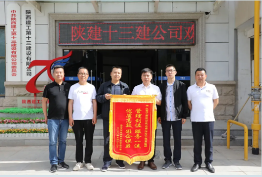 5月26日, 延安水務(wù)投資建設(shè)有限責(zé)任公司工程部部長(zhǎng)侯海濤一行,為陜建十三建公司送來一面寫著“管理到位 服務(wù)一流 優(yōu)質(zhì)高效 國企擔(dān)當(dāng) ”的錦旗,并對(duì)十三建公司優(yōu)質(zhì)高效服務(wù)給予了高度評(píng)價(jià)。