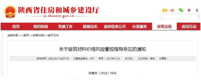 | 建筑材料價(jià)格風(fēng)險(xiǎn)如何管控,陜西省住建廳發(fā)布指導(dǎo)意見(jiàn) |