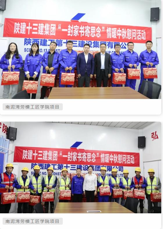在中秋佳節(jié)來臨之際,9月16日至17日,陜建十三建集團黨委、工會分別赴金鴻·行知坊項目、伴山樾谷·芳菲里項目、南泥灣勞模工匠學(xué)院項目施工一線慰問項目管理人員和廣大農(nóng)民工朋友,并為他們送去了月餅及節(jié)日的祝福。
