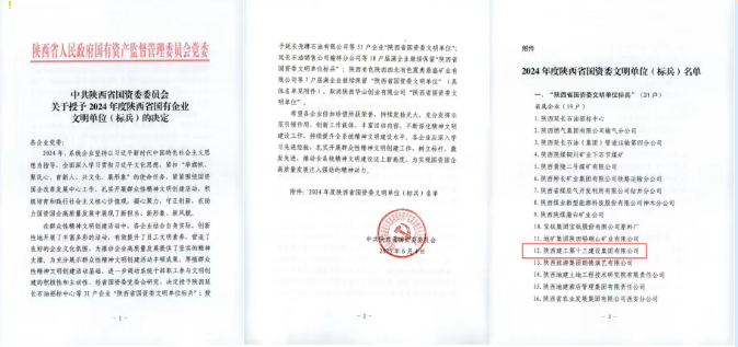 近日,中共陜西省國資委委員會印發(fā)關(guān)于授予2024年度陜西省國有企業(yè)文明單位(標兵)的決定,集團獲評“陜西省國資委文明單位標兵”。